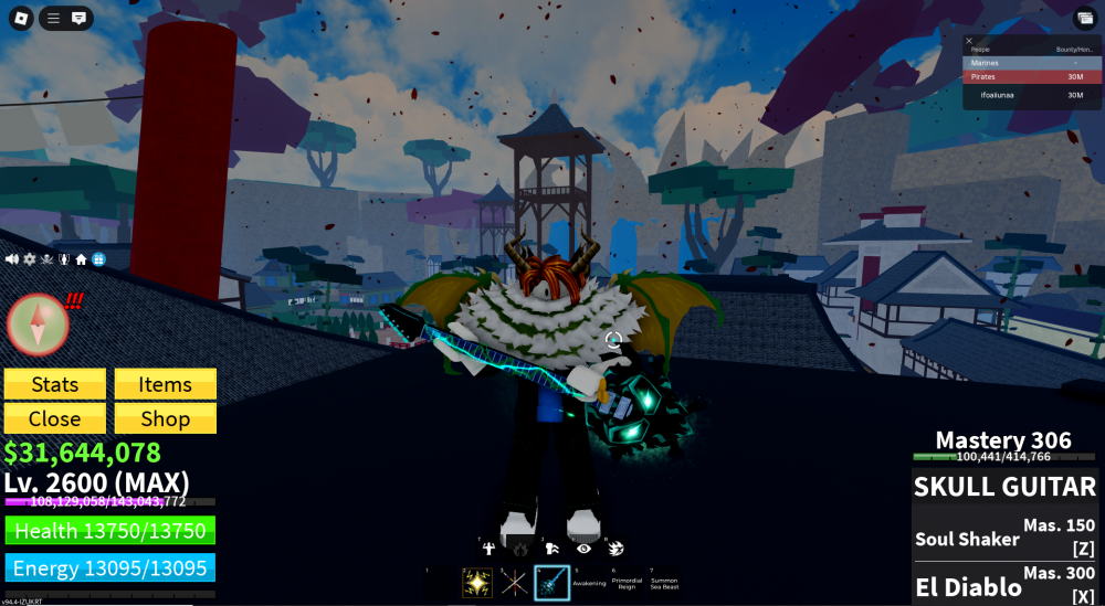حساب بلوكس فروت 30 مليون اسلوب دم و ريس تنين T10 + هيومن (حسابات blox fruit)